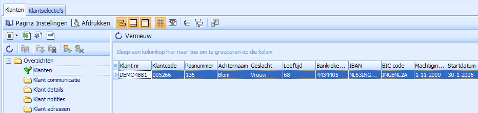 - Ga naar Overzichten > Algemeen > Klant.