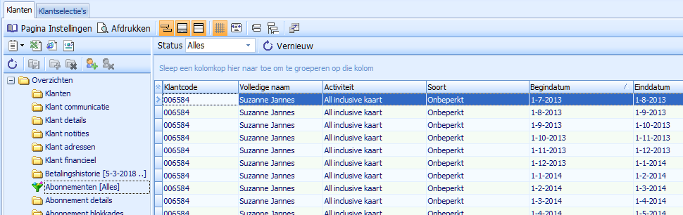 - Filter de abonnementen op de gewenste klant.