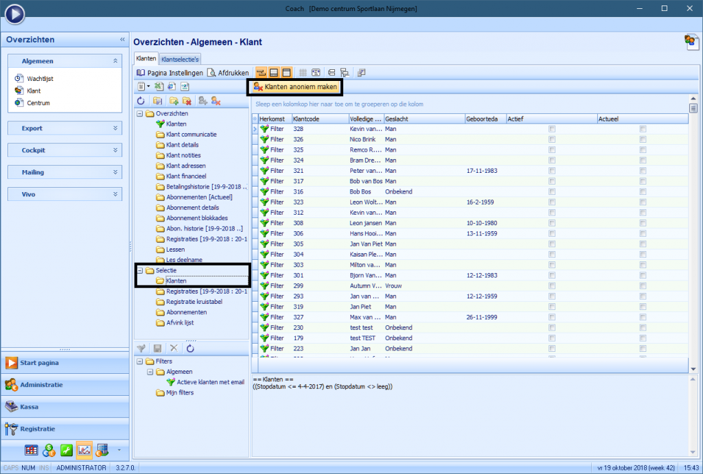 !! LET OP.. Indien er veel klanten anoniem moeten worden gemaakt kan dit een behoorlijke tijd in beslag nemen.