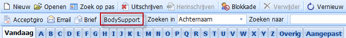 In de administratie staat nu bovenaan een knop [bodysupport] die u kunt gebruiken om automatisch naar de bodysupport applicatie te gaan met de gegevens van de huidige klant.