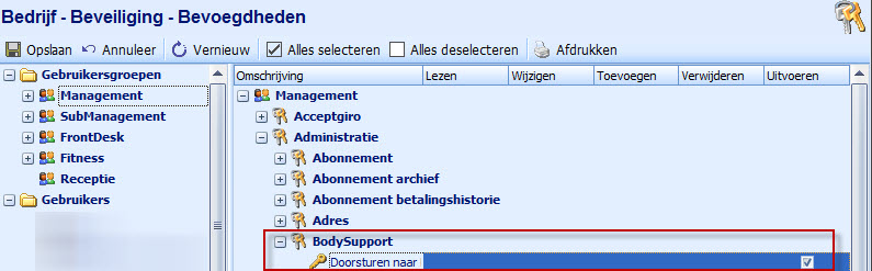 • ga naar menu Bedrijf – Beveiliging – Bevoegdheden