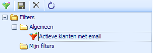 Als voorbeeld maken we een filter van alle actieve leden met een email adres welke we daarna opslaan en weer toepassen.