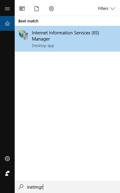 • Type hier “inetmgr” in, wat in de lijst “Beheer van Internet Information Services (IIS)” laat zien en druk op “Enter”